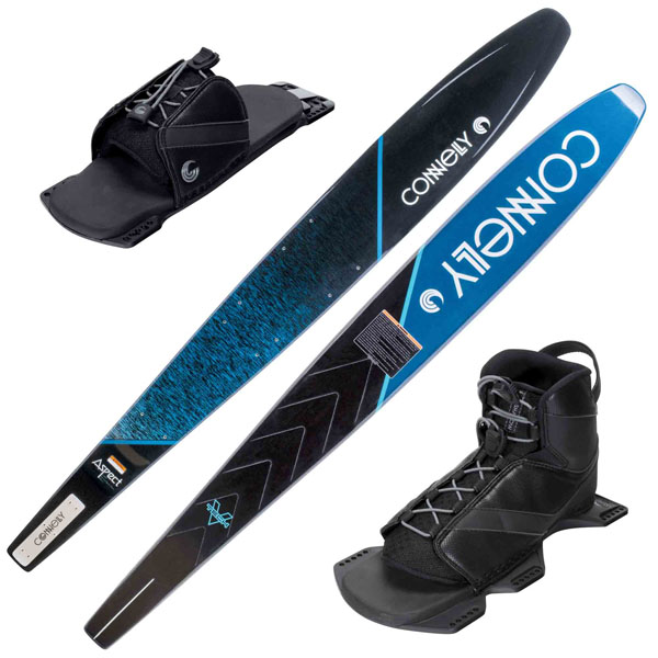 Ski de Slalom Connelly Aspect. Nivel Intermedio. Medidas 65″, 67″ o 69″. Diseño semi-wide. Ideal para slalom recreativo fuera de pista. Armado con Bota y Estribo nivel intermedio.