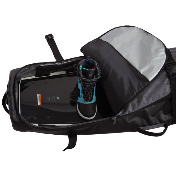 Funda con ruedas para viaje, para equipos de wakeboard armados. Caben hasta 4 equipos desarmados. Para protegerlos de las bodegas de los aviones, micros o del sol, etc. Agregale tus chalecos, manillares, trajes y mucho más. Medida: Tablas hasta 152cm. Disponible en varios colores.