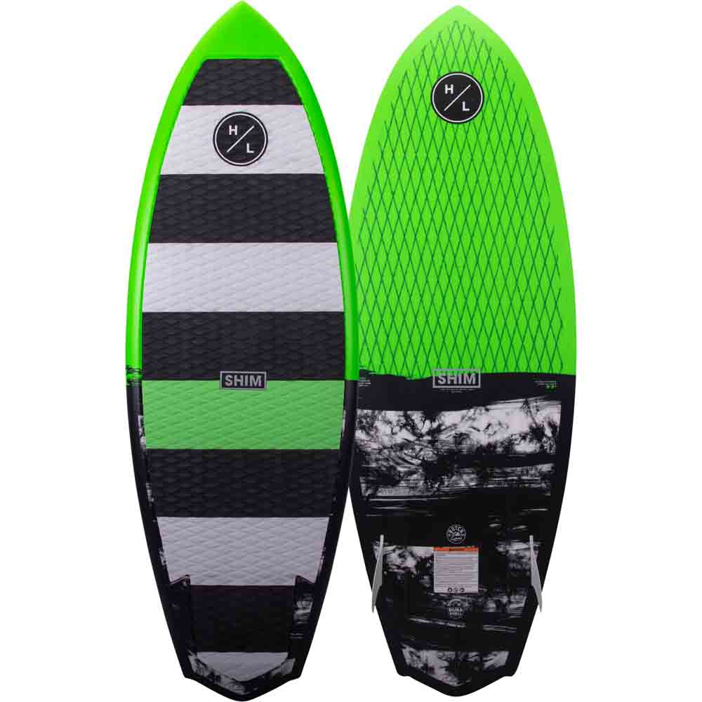 Tabla de Wakesurf Hyperlite Shim. Tabla Crossover (Surf+Skim) nivel Intermedio/avanzado (Amigable para principiantes). El diseño de la Shim fue concebido para darte un salto de nivel y calidad en tu andar. Tiene un rocker super veloz que te permite generar la velocidad necesaria para cualquier manionbra y su diseño más corto la hace muy maniobrable para tricks de rotación y voladas. Su fondo de doble concavidad entrega un andar ágil y rápido canalizando el agua en 2 flujos hacia las quillas y la cola de la tabla. Su antideslizante de EVA moldeada con corte mecanizado en forma de rombos y terminación áspera incrementa el grip y el agarre. El diseño de la cola en forma de diamante le da giros más agresivos. Construcción de Alta Compresión. Alma Biolite 3. Dise?o de cola: Diamond – Wide. 3 Quillas: 2 Torq 3,5″ y 1 Fish 1,5″.