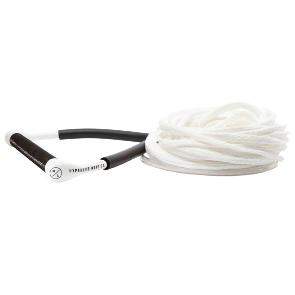 Manillar de Wakeboard Hyperlite modelo CG con soga Poly-E para niveles inicial a intermedio. Agarradera de 15″ x 1,2″ con grip de gamuza reforzada, protectores laterales con sistema anti-roll y flotadores. Soga de 18,3m con 3 tramos removibles de 1,50m cada uno. Colores: Amarillo, Celeste, Rojo o Blanco.